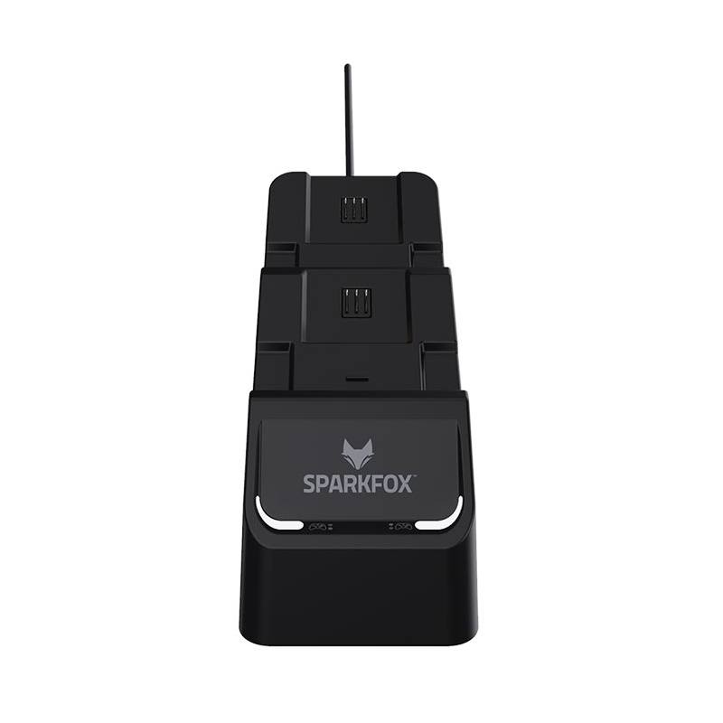 برند Sparkfox یکی از نام‌های تجاری شناخته شده در زمینه ی لوازم جانبی برای کنسول های بازی است که با تولید محصولات با کیفیت توانسته بخش قابل توجهی از بازار این تجهیزات را در آسیای میانه به خود اختصاص دهد. تنوع قابل ملاحظه از تجهیزات جانبی و کیفیت ساخت بالا از ویژگی های تولیدات این کمپانی بشمار می‌روند. SPARKFOX Xbox Series S|X Dual Charging station بدون اغراق یکی از مورد نیازترین لوازم جانبی برای کنسول های نسل نهم مایکروسافت است. این محصول برای همیشه دغده ی کاربران در رابطه با تهیه ی باتری برای کنترلرها را از بین برده و با توجه به باتری های 1100 میلی آمپری موجود در پکیج، 4 تا 6 ساعت بازی بدون توقف را تضمین میکند. استند شارژ این محصول میتواند همزمان 2 کنترلر را شارژ کرده و سپس بصورت فول شارژ نگهدارد تا در هر استفاده بتوانید از ظرفیت کامل باتری ها استفاده نمایید. اتصال تنها از طریق یک کابل به کنسول برای انجام عملیات شارژ توسط استند، نمایشگر های LED موجود بر روی استند جهت نمایش وضعیت شارژ باتری ها و درپوش بسیار باکیفیت جای باتری برای محکم بودن باتری ها بر روی کنترلر از ویژگی هایی هستند که این محصول را به انتخابی ارزشمند مبدل می‌کند.